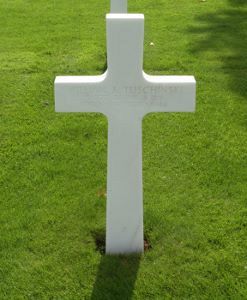 S/Sgt William J. Tuschinski enlisted at Fort Dix, New Jersey on 12 May 1942. Wounded on July 12 and twice on August 16, he returned to duty on 10 November after recovering in a hospital in England.Before going into the Army in May, 1942, he was employed at the Wilmington Shops of the DuPont Company. After receiving training at Camp Croft and being stationed at several camps, he went overseas in October 1943. He was stationed in Ireland before going to France.