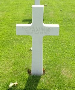 David R. Utterback worked in a machine shop before he enlisted in Cincinnati, Ohio on 9 December 1942.He was killed in action while on a patrol crossing the high ground north of Dinslaken, to see if the enemy had established a line of resistance there. When the patrol reached its destination, it was immediately fired upon.