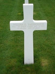 Pfc William E. Yarbrough Jr. enlisted at Fort McClennan, Alabama on 28 May 1943.He is memorialized at Elmwood Cemetery in Birmingham, Alabama.
