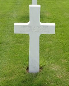 Pfc Victor A. Young landed on Omaha Beach on D-Day. He was seriously wounded in action on 19 November 1944 and died the next day.Three of his brothers also served: Arthur and Walter in the Army and Harry in the U.S. Navy.