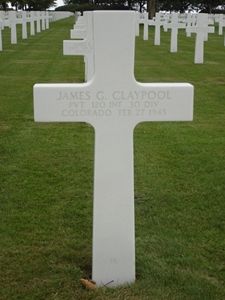 Pvt James G. Claypool attended high school for four years and attended Colorado A&M as a member of the class of 1946. He worked for his father on the family farm.He enlisted in Denver, Colorado on 28 July 1944.