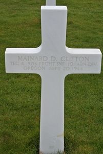 T/4 Clifton was first buried at the Temporary American Military Cemetery of Son, The Netherlands on 20 September 1944. After being disinterred, his remains were evacuated to Margraten, where he was given his final resting place on 7 February 1949.