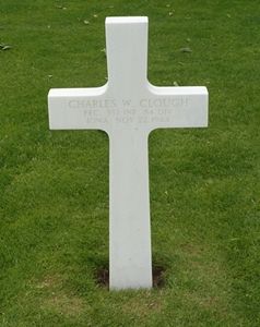 Pfc Charles W. Clough enlisted at Camp Dodge, Iowa on 26 January 1943.He was the oldest son of Charles William and ElDona Pearl Clough and had five younger siblings. The family lived in a small house across from the Methodist Church which was the source of many fond memories. One of the highlights of his life was when he attended "Boy's Town" at Camp Dodge in Des Moines. It was sponsored by the American Legion each summer for students completing their junior year of high school.