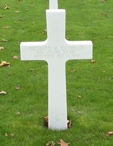 Pfc Richard M. Conklin was married to Lilly Reynolds in 1935.He worked for the Republic Aviation Corporation where he was awarded a patriotic service award for individual production efforts and the purchase of bonds.