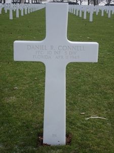 Pfc Daniel R. Connell enlisted at Camp Blanding, Clay County, Florida on 27 September 1944.Source of information: Peter Schouteten, John T. Gerlosky, Terry Hirsch, Carla Mans, www.wwiimemorial.com, www.archives.gov, www.ancestry.com - WWII Enlistment Records / The Fifth Infantry Division in the ETO, 1945, ISBN: 0-89839-274-8 / U.S., Headstone and Interment Records for U.S. Military Cemeteries on Foreign Soil