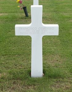 Pfc Francisco Cordeiro was employed at the River Mills Inc.He enlisted on 24 June 1943 and trained at Camp Stewart, Georgia, Camp Butner, North Carolina and Camp Howze, Texas, before he was sent overseas from Fort George G. Meade, Maryland.