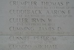 The airplane was lost as the result of enemy aircraft attacks and was last seen near the Dutch coast. It is assumed the airplane crashed into the sea, north of Texel. All crew members are still missing in action and are all remembered at the Walls of the Missing at Margraten.