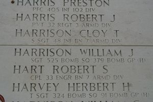 Sgt William J. Harrison graduated from Riley High School in 1938. He was employed by the Studebaker Corporation.He enlisted in Indianapolis, Indiana on 5 October 1943 and received basic training at Jefferson Barracks, Missouri. He was sent overseas in July 1944.