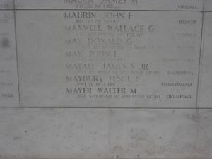 Sgt Walter M. Mayer was married to Rose A. Warnert in Oklahoma on 24 November 1942. They had one daughter who has never known her father.He employed with federal communications at Oklahoma City, Oklahoma before he enlisted in Oklahoma City, Oklahoma, on 10 January 1944.