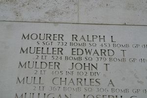 S/Sgt Ralph Mourer enlisted in Denver, Colorado on 2 February 1943. His son Victor was born after S/Sgt Mourer's death.The airplane was shot down by enemy fighters. The entire crew of ten was killed.