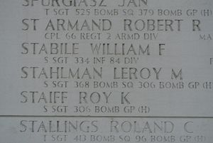 S/Sgt Leroy M. Stahlman was employed at Vanadium Corporation in Niagara Falls.He volunteered for the Air Corps of the Army of the United States in Buffalo, New York on 25 September 1942.