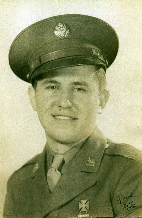 Mike Swab Jr. was a miner before he enlisted in Altoona, Pennsylvania on 7 January 1943.The night of 16 to 17 November 1944, he spent in a fox hole with his buddy George S. Morris. On the early morning of 17 November, his company moved forward again in the open field towards Schleiden. George S. Morris wrote about the last moments of Mike Swab: "The next morning we moved from this place and went across a field. My friend was some distance to the rear from me. I heard a loud explosion. He stepped on a land mine. I tried to see how he was doing, but I had to move forward."