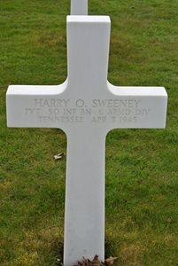 Pvt Harry O. Sweeney enlisted at Fort Oglethorpe, Gerogia on 8 August 1944.He was first buried at the Temporar American Military Cemetery of, Germany.