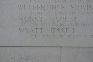 Jesse L. Wyatt attended Ensley High School.He volunteered for the Air Corps of the Army of the United States at Gunter Field, Alabama on 28 February 1942 and received his wings in Hondo, Texas in February 1943.