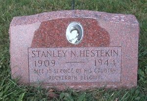 Private Hestekin worked on a farm before he enlisted in Wilwaukee, Wisconsin on 12 September 1942 and was sent overseas in August 1944, he was sent to Fort George G. Meade, Maryland.He is remembered at the South Beef River Lutheran Cemetery in Garfield, Jackson County, Wisconsin.