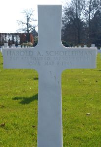 Sgt Spades, the Radio Operator, rendered this Casualty Questionnaire report after repatriation from POW status: that Blakeley, Schoelerman, Amodeo (Pilot, Co-Pilot and Engineer respectively) were in the flight deck just before he left the ship, and they were not injured; and Navigator Walker and Nose Gunner Talley were in the nose compartment at that time, condition unknown. He indicated that according to the Germans later these men were found dead in their relative positions in the crashed plane. This crew member also reported in his account that Law, Halpern, Flesey, and Rubenstein bailed out of the waist hatch, while he exited through the bomb bay. He also noted that the Engineer, Pfc Amodeo, was last seen close to going into the bomb bay area and appeared ready to bail out. There were no other available facts by any others concerning the ship’s or specific crew member’s final situations involved with this unfortunate happening. The MACR remarks on this emergency stated: "Hit by tracers from runaway tail guns of A/C 42-29476 which was flying lead of the High Right Element in the Squadron".Source of information: Peter Schouteten, www.ancestry.com - 1930 Census / Iowa Births and Christenings Index