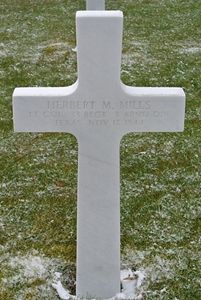 Herbert Mills graduated from the A&M College of Texas (now Texas A&M University) as a member of the Class of 1939 with a degree in Agriculture. He worked as the Assistant County Agent in El Paso.He was awarded the Silver Star posthumously. The citation cited: For extraordinary heroism in action against the enemy from 16 to 18 November 1944, in Germany. Lt Col Mills, by a combination of bravery conspicuous leadership and exceptional tactical ability brilliantly led his task force over difficult terrain, across dense minefields and through devastating enemy fire to secure a vital objective. On the initial day of the assault, one of his tanks was hit blocking the advance of the column through a lane cleared of mines. Lt Col Mills dismounted from his tank, personally directed engineers in clearing another lane and led his force through the minefield. While courageously reorganizing his position, a shell struck within a few feet of him, causing a severe strain of his right leg. Though in much pain, he refused medical aid and continued his reconnaissance on foot to improve his positions. Although he lost all officers of his medium tank companies and thirty-three tanks, Lt Col kept his force effectively organized and, in the face of fanatical enemy oppositional, captured his objective without infantry support. While Lt Col Mills was in the process of communicating with higher headquarters to report that his mission was accomplished, a shell struck the building above his tank, fatally wounding him.