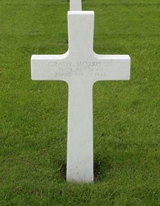 The platoon was ordered to advance across an open field between Düren and Girbelsrath against the platoon leader's advice, Lt Oglensky. As a result, three tanks were destroyed by 88 mm fire. Of the casualties, two men are buried at Henri-Chapelle: T/5 Grady Morris Jr, and Cpl Ray T. Merrit. Lt Oglensky is listed on the Walls of the Missing at Margraten.Source of information: Raf Dyckmans, www.wwiimemorial.com, http://cgsc.contentdm.oclc.org - After Action Report 740th