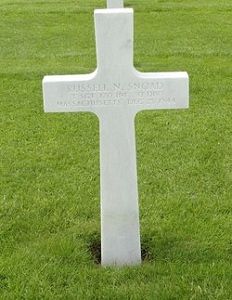 He was posthumously awarded a Distinguished Service Cross for his heroic action at Petit Coo, close by Stavelot on 23 December 1944. S/Sgt Paul Bolden and T/Sgt Russell N. Snoad decided to attack a house from which the Germans were firing. While his companion fired to cover him, Bolden rushed the door, tossed in a pair of hand grenades, then went in firing his Tommy gun. Bolden killed twenty of the enemy, then withdrew. A blast of fire killed T/Sgt Snoad and wounded S/Sgt Bolden, but he dashed back into the house, killing fifteen more of the enemy. (Bolden later received the Medal of Honor).