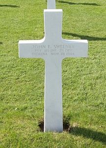 Pvt John Sweeney was employed by the Zenite Metal Corporation.He enlisted on 3 March 1944 at Fort Benjamin, Indiana. He arrived overseas in August 1944.
