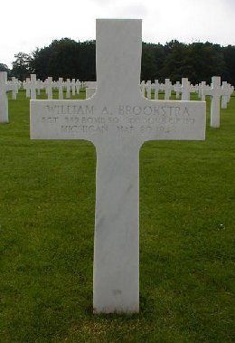 Sgt William A Brookstra was employed at Michigan Bell Telephone CoThe #2 engine was hit by shells from two German ME-262 jet fighters shortly after bombs away and immediately burst into flames. The oxygen and interphone systems were malfunctioning. The #2 engine was out and pieces of the nacelle fell off. The skin on the left horizontal stabilizer ripped off and ribs could be seen.