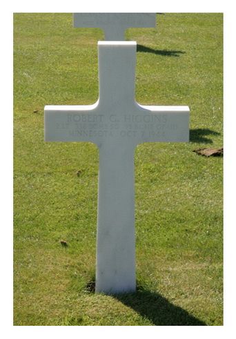 Lt. Robert G. Higgins graduated from Rochester High School in 1938 and the University of Chicago in 1942.A/C 44-6482 was hit by flak. Five crew members bailed out shortly after leaving formation. The aircraft exploded in midair within 5 seconds after the last man left the ship, killing the remaining 4 crew members. 2nd Lt Higgins was among the men who bailed out prior to the explosion. Surviving member reports indicate that he may have been killed by a burning part of the exploded plane that may have set his parachute afire.