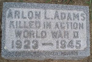 The picture shows Pfc Adams awaiting German counterattacks in his foxhole in the vicinity of Bardenberg and Würselen, Germany on 17 October 1944.He was awarded the Bronze Star Medal for leading a patrol into enemy territory on 26 November 1944. The same day, he was also awarded the Silver Star Medal for destroying enemy tanks. The citation reads: Pfc Adams, with a companion, knocked out two tanks and held four others at bay with a bazooka during a 30th Division action in Germany 26 November. The Germans had struck back at Pfc Adams's company with six tanks and supporting infantry. Using a bazooka, PfcAdams and his comrade advanced to meet the onslaught and fought them off untill artillery caused the remaining tanks to withdraw. 'Their courageous action was primarly responsible for the repulse of the counterattack.