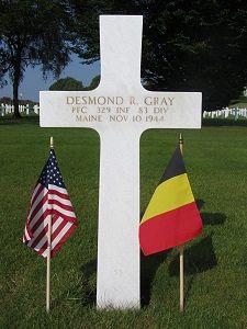 Pfc Desmond R. Gray enlisted in Portland, Maine on 14 October 1943.Source of information: Terry Hirsch, Peter Schouteten, Bruce Duane Gray (son), www.abmc.gov, www.wwiimemorial.com, www.archives.gov – WWII Enlistment Record, www.ancestry.com - Headstone and Interment Record / 1920/1930/1940 Census / Maine, Marriage Index, 1892-1966, 1977-1996, http://83rdinfdivdocs.org – After Action Report