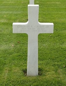 Pvt Charles F. Grove Jr. graduated from University Military School in 1939 and was outstanding in athletics.He enlisted at Fort McClellan, Alabama on 17 June 1943 and was sent overseas in December of the same year.