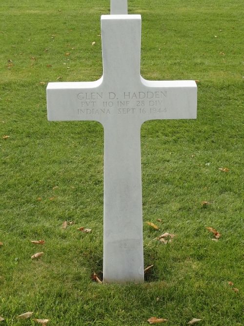 Pvt Glen D. Hadden was a truck driver before he enlisted in December 1943.He was first buried at the Temporary American Military Cemetery of Fosse, Belgium.