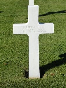 Pvt Albert A. Hain was first buried at Temporary American Military Cemetery Fosse, Belgium.