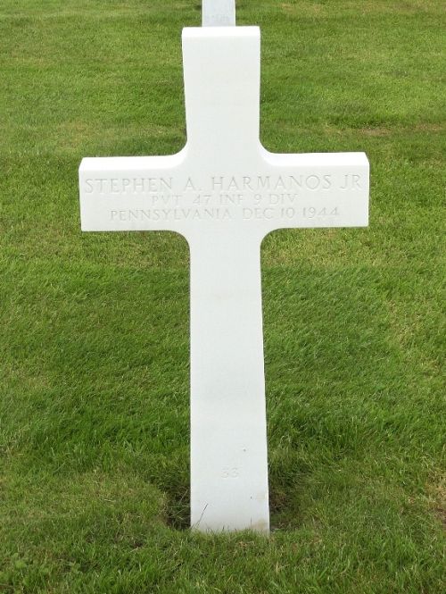 Pvt Stephen A. Harmanos Jr. graduated form Pittston High School in 1938 and was a machinist.He married Margaret Vavrek in his hometown on 21 August 1943.