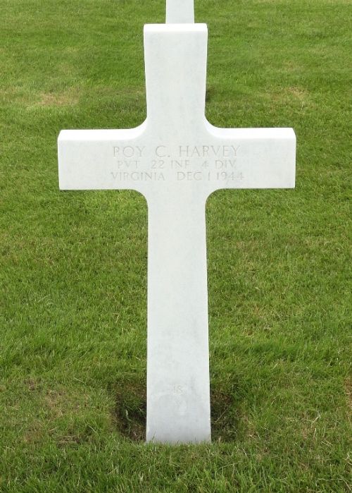 Pvt Roy C. Harvey worked as an electrician before he enlisted at Fort George G. Meade, Maryland on 6 April 1944.Source of information: Danny van der Groen, www.abmc.gov, www.wwiimemorial.com, www.archives.gov - WWII Enlistment Record, www.ancestry.com - Headstone and Interment Record / U.S. WWII Draft Cards Young Men / North Carolina Birth Indexes