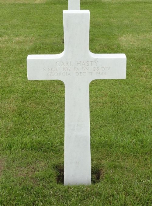 S/Sgt Carl Hasty was a carpenter before he enlisted at Fort McClellan, Alabama on 6 December 1941.Source of information: André Koch, Carla Mans, www.abmc.gov, www.wwiimemorial.com, www.archives.gov - WWII Enlistment Record, www.ancestry.com - 1920 Census / Headstone and Interment Record, www.ibiblio.org/hyperwar/USA/USA-E-Ardennes/USA-E-Ardennes-9.html