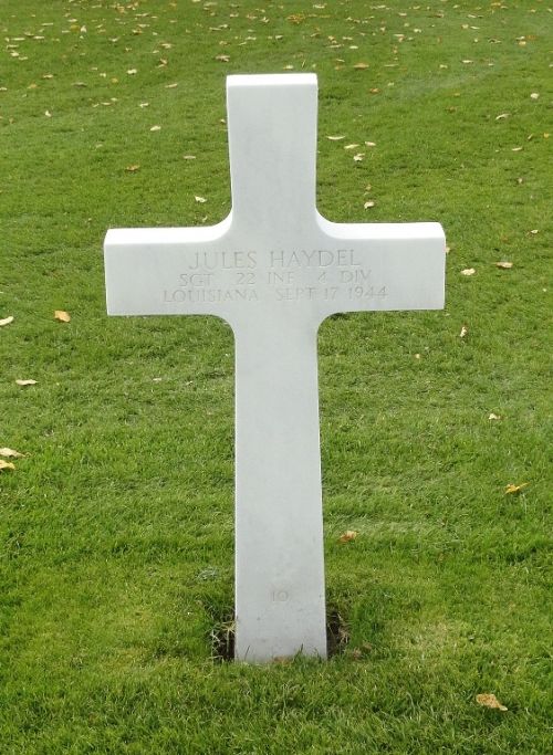 Sgt Jules Haydel was a welder before he enlisted in Jacksonville, Florida on 19 May 1941.He was first buried at the Temporary American Military Cemetery of Fosse, Belgium.