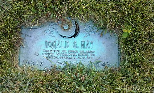 T/Sgt Donald G. May is remembered at the River Hill Memorial Park, North Aurora, Illinois