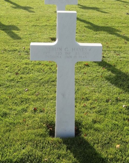 Pvt Verlin G. Hayes attended high school for three years before he enlisted at Fort Benjamin Harrison, Indiana on 16 March 1943. He joined his unit from the 92nd Replacement Battalion on 21 December 1944.Source of information: Peter Schouteten, Carla Mans, www.abmc.gov., www.wwiimemorial.com, www.archives.gov