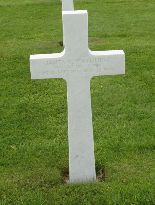 Pvt James B. Hayhurst was a civil servant before he enlisted in Clarksburg, West Virginia on 25 October 1943.Source of information: Peter Schouteten, www.abmc.gov, www.wwiimemorial.com, www.archives.gov - WWII Enlistment Record, www.ancestry.com - Headstone and Interment Record / Elizabeth Ann Heston Family Tree, http://9thinfantrydivision.net