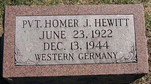 Pvt Homer J. Hewitt was taken prisoner on 13 December 1944.He was shot the dame day while marching to a POW camp.