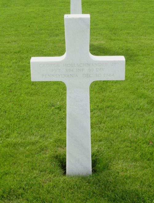 Pvt George Hollschwander Jr. was a metal worker before he enlisted in Erie, Pennsylvania, on 4 December 1942.Source of information: Peter Schouteten, Carla Mans, www.abmc.gov, www.wwiimemorial.com, www.archives.gov – WWII Enlistment Record, www.ancestry.com - Headstone and Interment Record / Buffington Family Tree