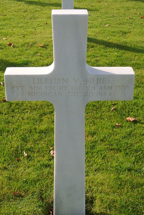 Pvt Lilburn V. Huie was first buried at the Temporary American Military Cemetery of Foy, Belgium.