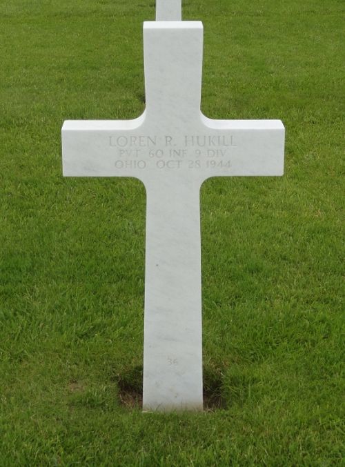 Pvt Loren R. Hukill enlisted at Camp Blanding, Florida on 30 January 1944.Source of information: Peter Schouteten, www.abmc.gov, www.wwiimemorial.com, www.archives.gov - WWII Enlistment Record, www.ancestry.com - Headstone and Interment Record, http://9thinfantrydivision.net