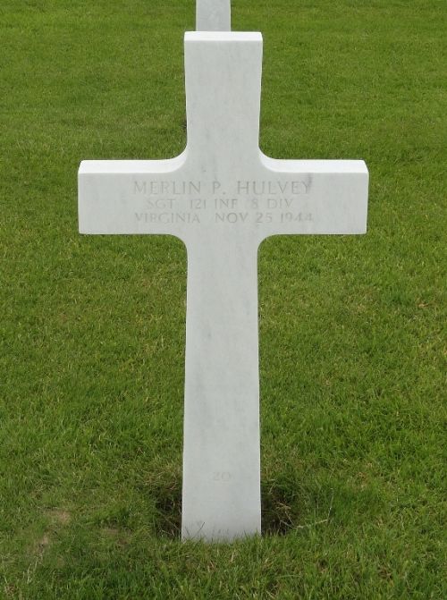 Sgt Merlin P. Hulvey enlisted in Roanoke, Virginia on 1 October 1941 and was sent overseas in November 1944.He was slightly wounded in action on 8 September 1944 for which he was awarded the Purple Heart Medal a first time.