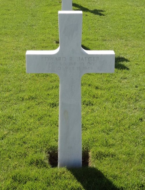 Pfc Edward R. Jaeger worked in the manufacture of miscellaneous products before he enlisted at Fort Thomas, Kentucky on 22 March 1944.Source of information: Peter Schouteten, Carla Mans, www.abmc.gov, www.wwiimemorial.com, www.archives.gov - WWII Enlistment Record / Ohio, Birth Index, 1908-1964, www.ancestry.com - Headstone and Interment Record, http://9thinfantrydivision.net