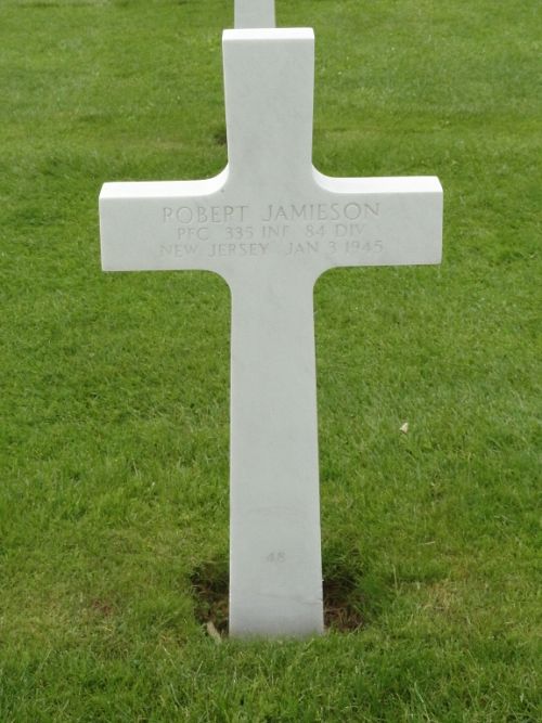 Pfc Robert Jamieson enlisted in Newark, New Jersey on 13 May 1943.Source of information: André Koch, Carla Mans, www.abmc.gov, www.wwiimemorial.com, www.archives.gov – WWII Enlistment Record, www.ancestry.com - 1930/1940 Census / Headstone and Interment Record / U.S. WWII Draft Cards Young Men