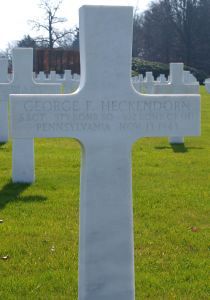 S/Sgt George F. Heckendorn joined the Air Corps of the Regular Army in Philadelphia, Pennsylvania on 10 July 1941.An eye-witness account, given by a pilot of another airplane in the formation, Lt Fogarty, stated that this airplane went down at 1125 hours in a spin and on fire having been attacked by an FW-109 enemy fighter, northeast of the target. There were no other related details of the loss in the MACR.