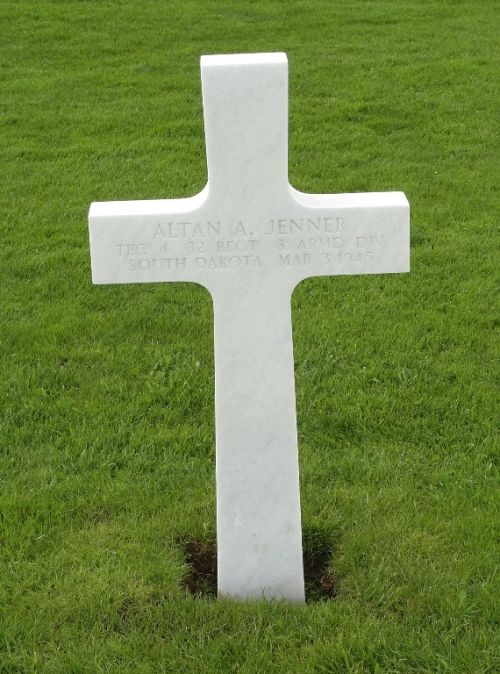T/4 Altan A. Jenner was first buried at Block ZZZ, Row 5, Grave 97.Source of information: Peter Schouteten, Carla Mans, www.abmc.gov, www.wwiimemorial.com, www.ancestry.com - Headstone and Interment Record / U.S. WWII Draft Cards Young Men / 1920 Census