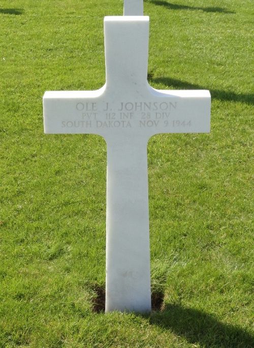 Pvt Ole J. Johnson entered into the Army on 4 February 1944.On the 1st of March 1945, Mrs. Mabel G. Johnson received a message from the War Department informing her that her son Pvt. Ole J. Johnson had been killed in action somewhere in Germany on November 9, 1944.