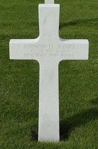 Pfc Vernon D. Jones enlisted in Syracus, New York on 15 January 1943.Source of information: André Koch, www.abmc.gov, www.wwiimemorial.com, www.archives.gov – WWII Enlistment Record, www.findagrave.com, http://corbettconnections.net/wwii.html, www.ancestry.com, 1910/1920/1930/1940 Census, Headstone and Interment Records for U.S. Military Cemeteries on Foreign Soil, 1942-1949