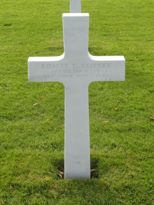 Pfc Robert E. Kellett was a metal workrer before he enlisted atFort Niagara, New York on 6 March 1942.He was first buried at the Temporary American Military Cemetery of Fosse, Belgium.